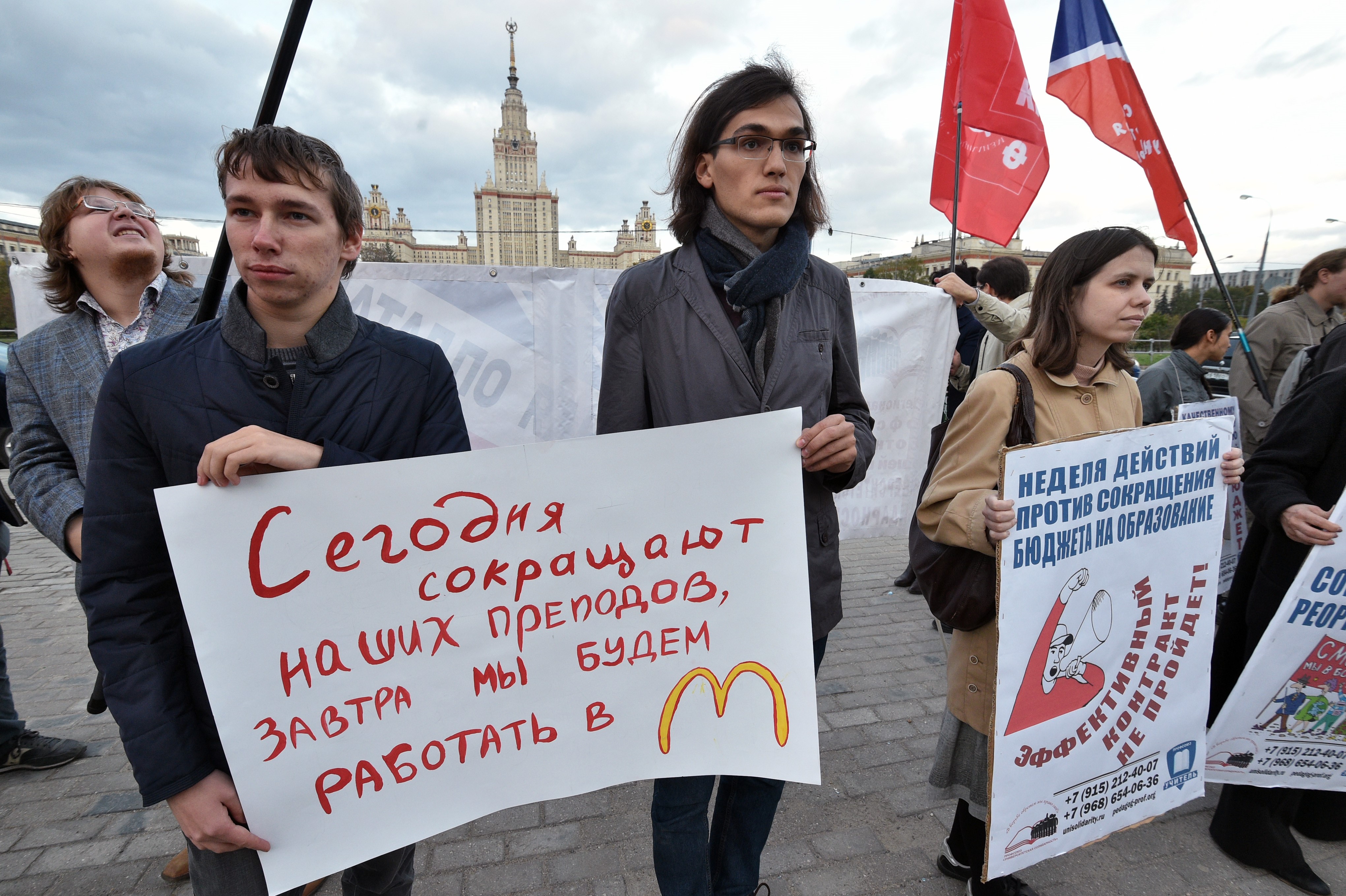 Участники акции в рамках кампании профсоюзов «Учитель» и «Университетская солидарность», 2016 год. Фото: Петр Кассин / КоммерсантъСкажем, в «Университетской солидарности», сопредседателем которой я являюсь, максимальный должностной уровень для членов профсоюза — заведующий кафедрой, и то для них придуман отдельный, довольно усложненный порядок приема в профсоюз.